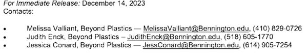 In a short email correspondence with a representative of Beyond Plastics, or Bennington College (it was not made clear to me), I was informed that: