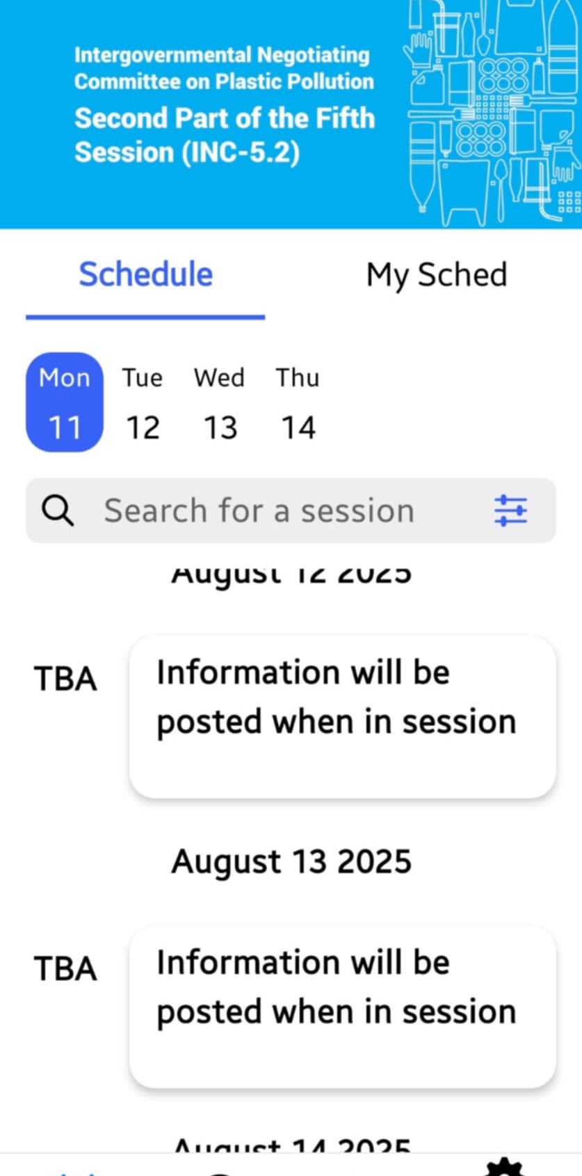 The UNEP schedule is a moving target, known only at the last moment with many changes. I downloaded the app, but it doesn’t tell me what is happening tomorrow. I hope they figure it out soon.