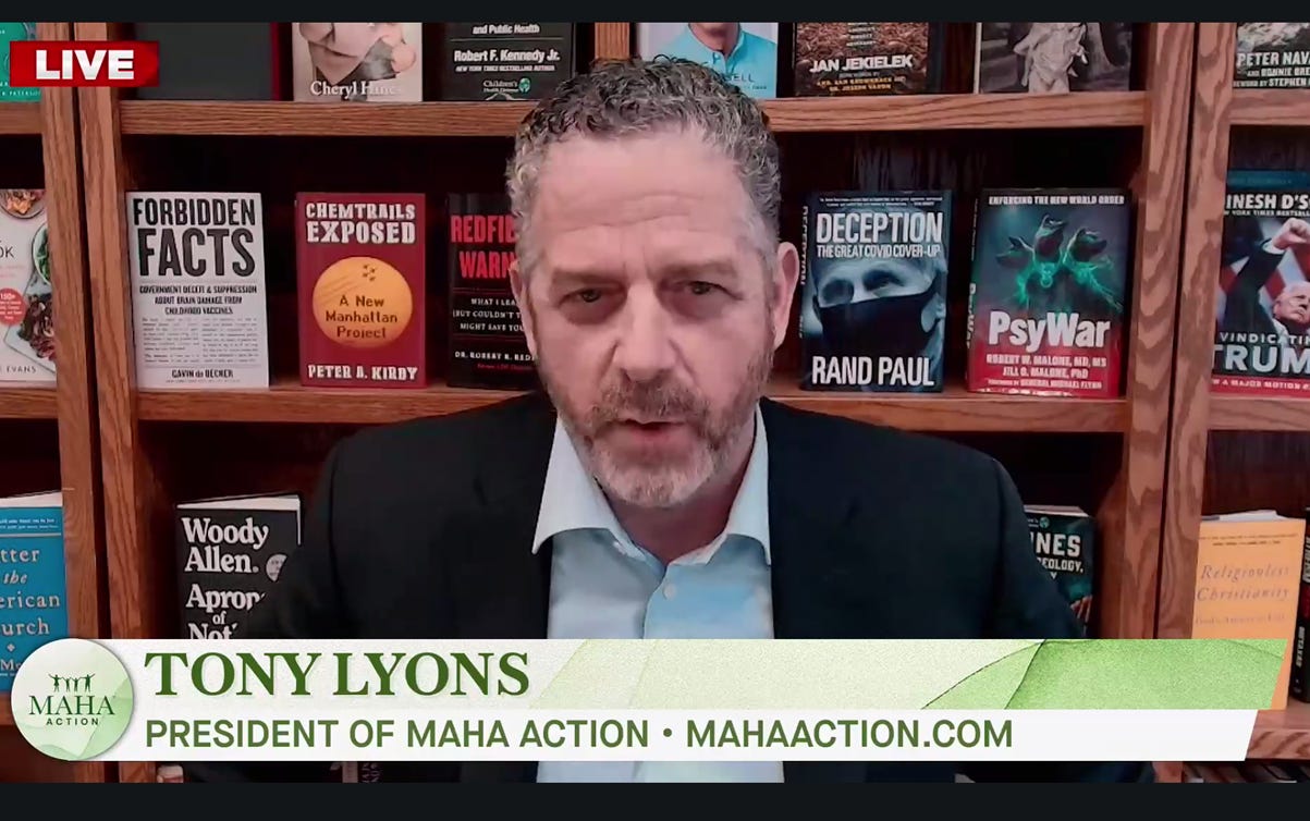 It seems safe to assume that Tony has taken over from Del as the face of MAHA under Bobby Jr (suggesting a shift away from the rabid anti-vaxxer faction).